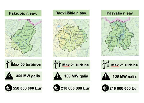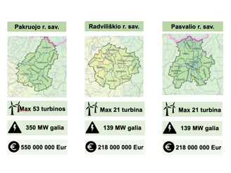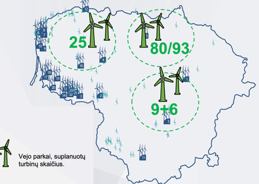 Galia 700 -1000 MW, 120vnt., šeši atskiri projektai Jonavos, Mažeikių, Pasvalio, Pakruojo ir Radviliškio rajonuose.